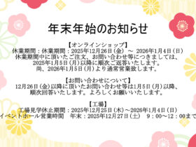 平素は格別のご愛顧を賜り厚く御礼を申し上げます。さて、年末年始は下記の期間につきまして弊社では休業とさせていただきます。ご不便をおかけいたしますが、ご理解いただけますようお願い申し上げます。 【オンラインショップ… -