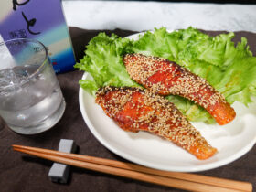 今回のおつまみ紹介は、鮭の甘辛ごま照り焼きです。 材料(1人分)生鮭 2切れ塩 少々料理酒 大さじ1杯片栗粉 適量 調味料みりん 大さじ1杯しょうゆ 大さじ2杯ポン酢 大さじ2杯 白いりごま 大さじ1…