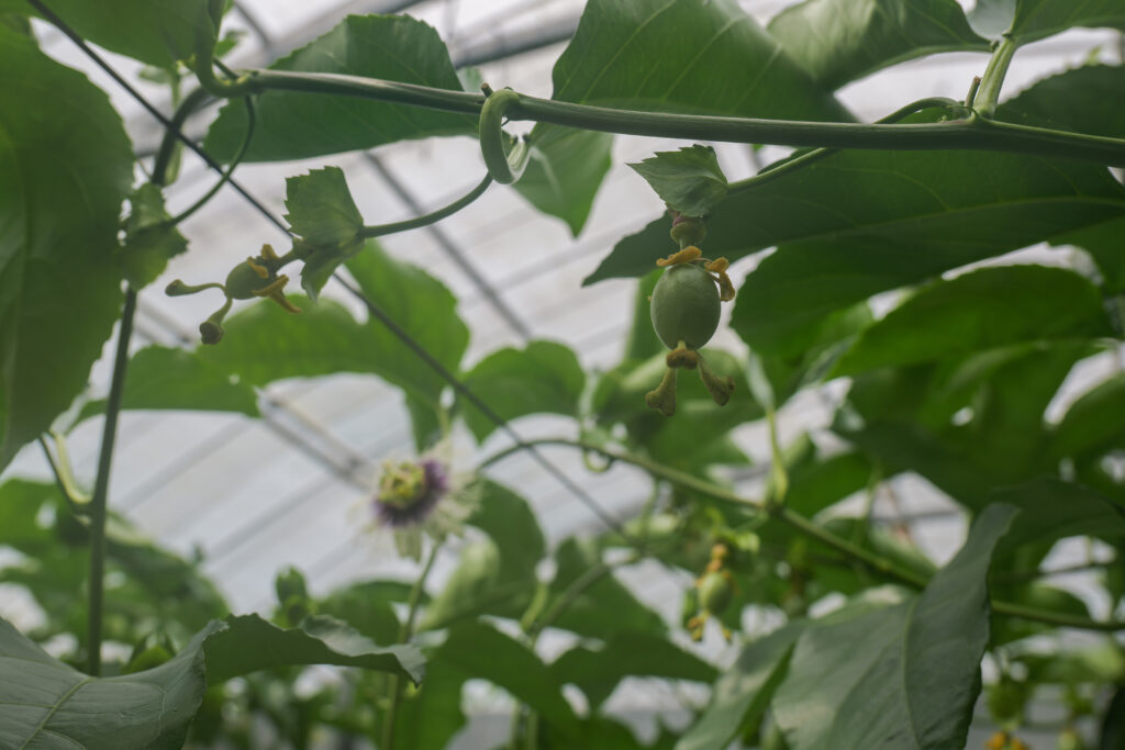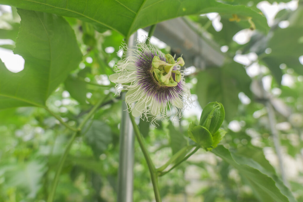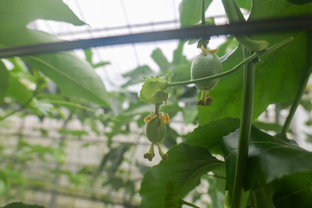 春を迎え、弊社農園のパッションフルーツが花を咲かせ、かわいらしい実をつけはじめました。