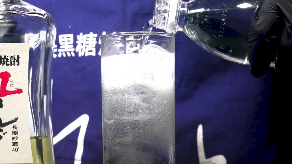 紅さんごを1:炭酸水を2〜3の割合で注いで完成!