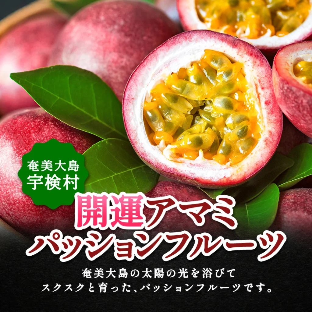 奄美大島最高峰の湯湾岳の麓、自然豊かな宇検村で育まれたパッションフルーツ。 奄美大島開運酒造から、旬の時期だけのお届けです。