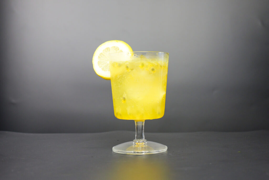 フレッシュなパッションフルーツを使った黒糖焼酎れんとのパッションフルーツサワー。