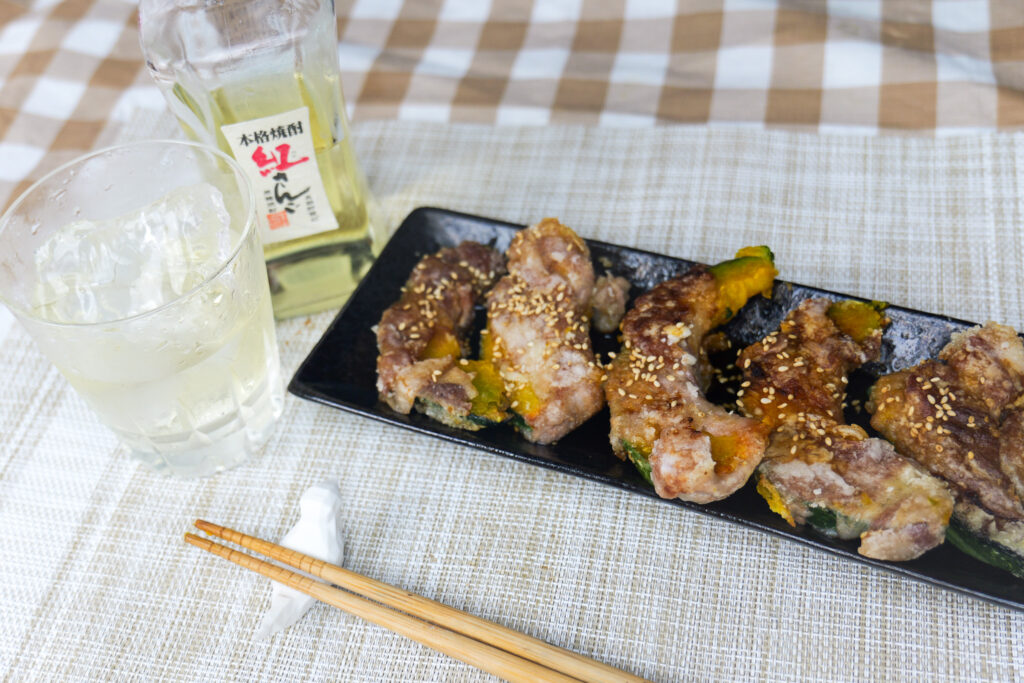 3.豚ロースをかぼちゃに巻き片栗粉をつける