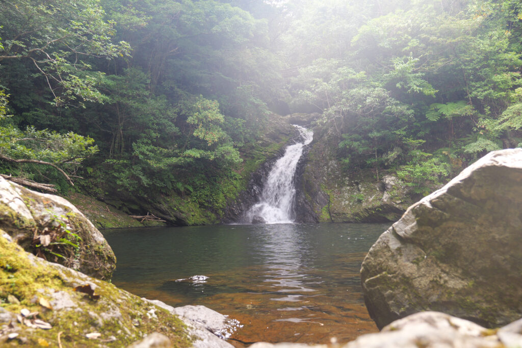 緑に包まれた遊歩道を進むと、苔むす岩と清流が織りなす神秘的な景観が目の前に広がります。