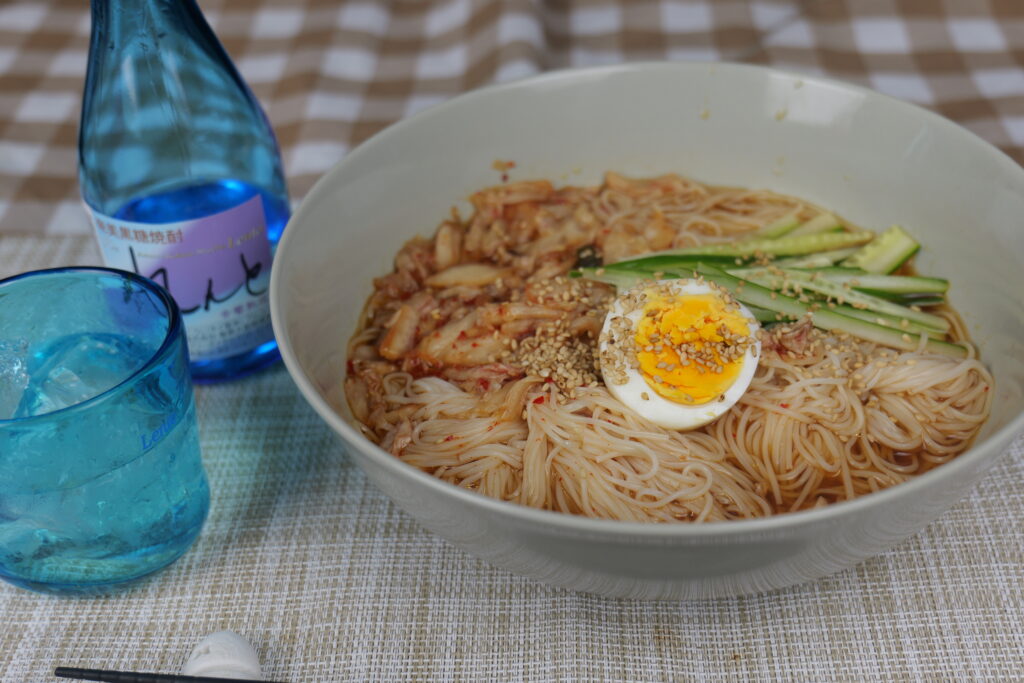 1.きゅうりはせん切り、ゆで卵は半分に切る。