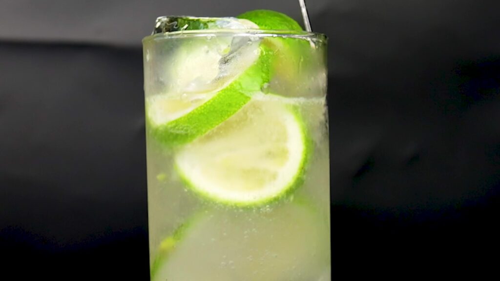 氷のグラスにかぼすを切って入れて、れんと30ml+ソーダを注ぐだけ。
