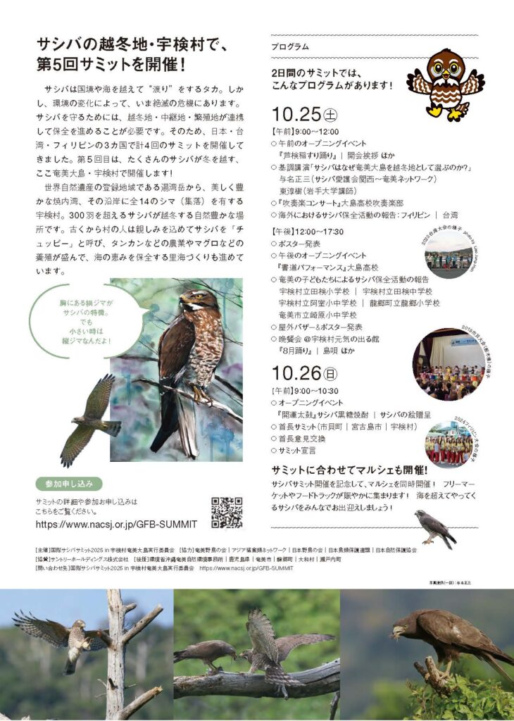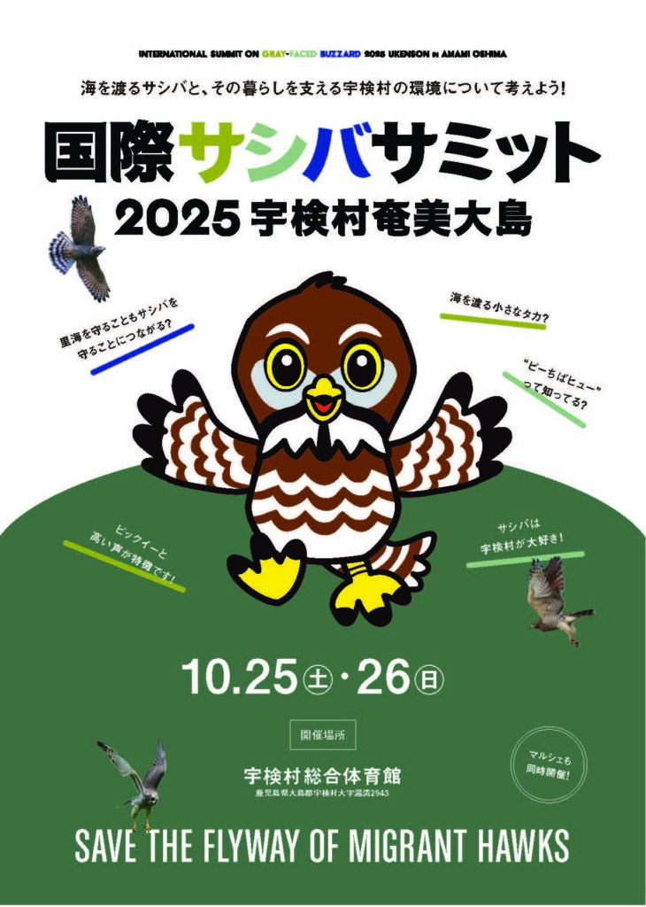 海を渡る小さなタカ「サシバ」と、その暮らしを支える宇検村の自然環境について考えるサミットが、今年も開催されます✨