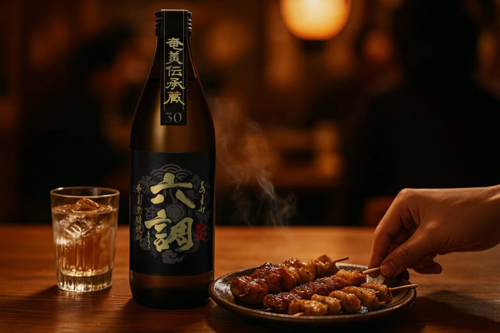 深いコクとまろやかさの黒糖焼酎「あまみ六調」を。