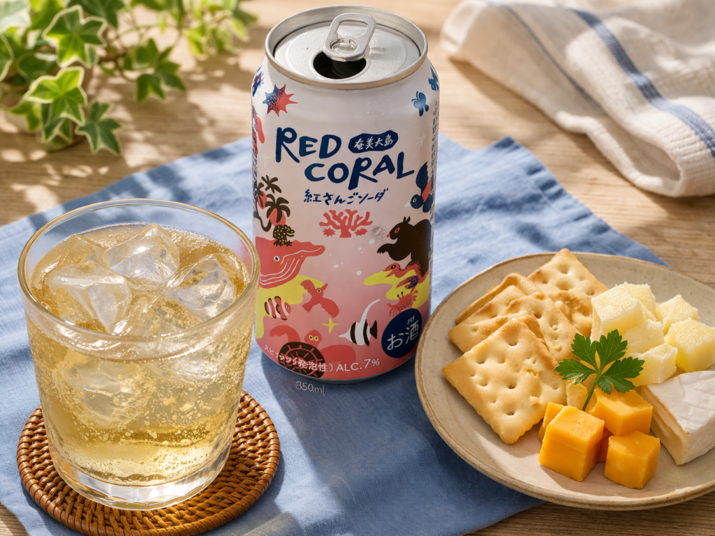 「RED CORAL」と、チーズ&クラッカーの気軽セット。